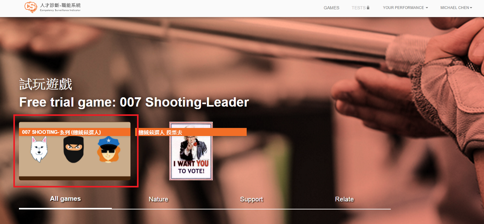 第三步、註冊完後會自動導進遊戲列表,試玩遊戲為 007 SHOOTING-系列(總統候選人)