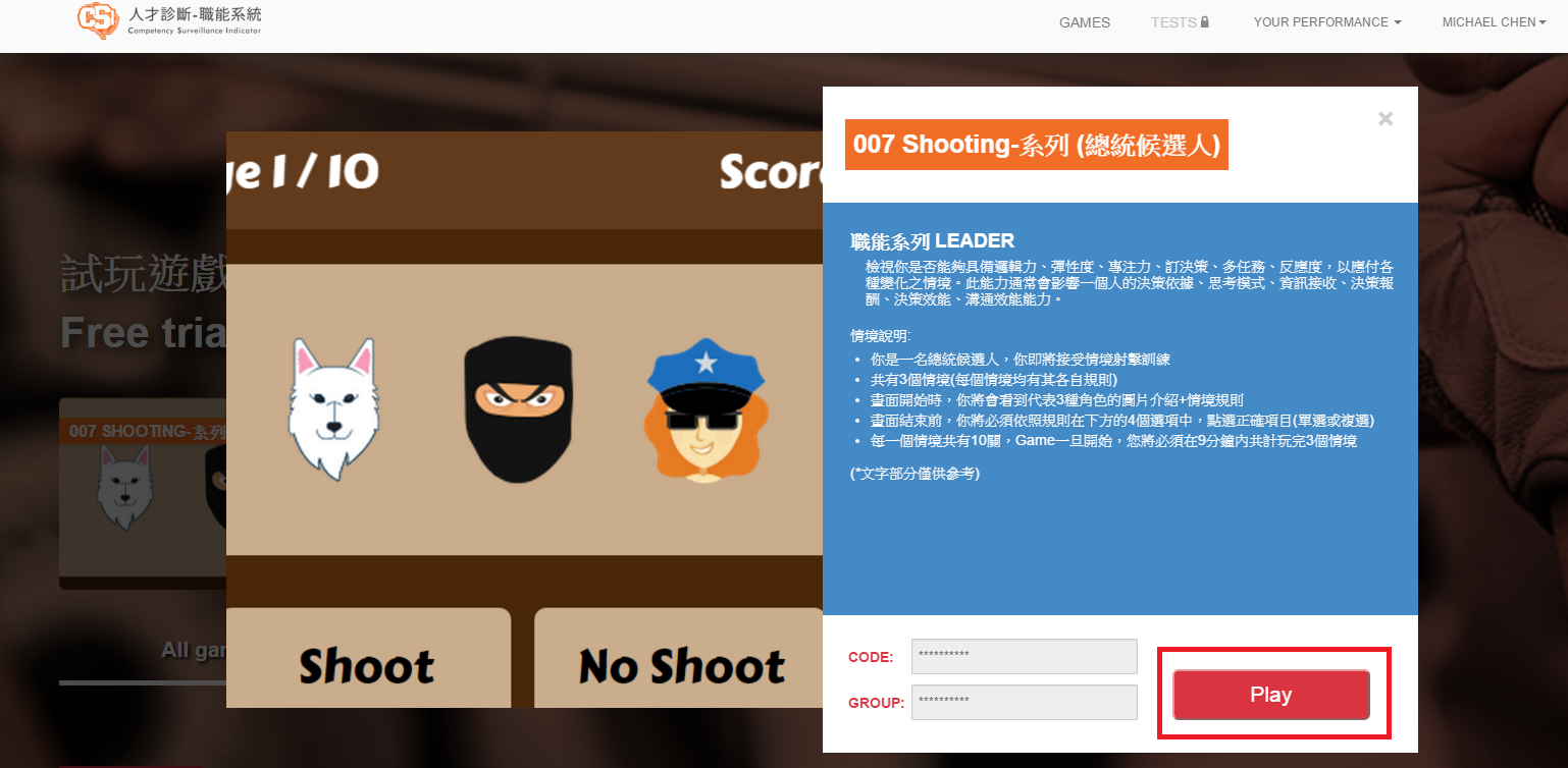 第四步、點下該遊戲後出現遊戲說明,閱讀完說明後,點擊右下角 紅色(Play)按鈕