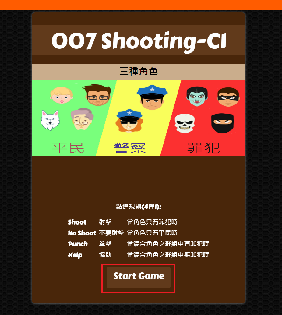 第五步、點擊下方 咖啡色(Start Game)按鈕後即可試玩遊戲,遊戲總共有三關